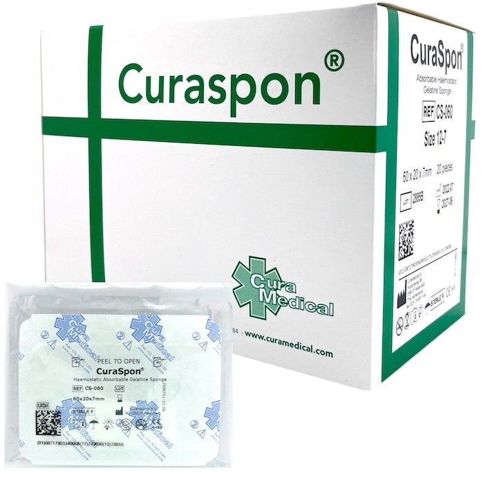 Esponja hemostática 30 x 50 a 60 mm. Caja con 20 piezas.